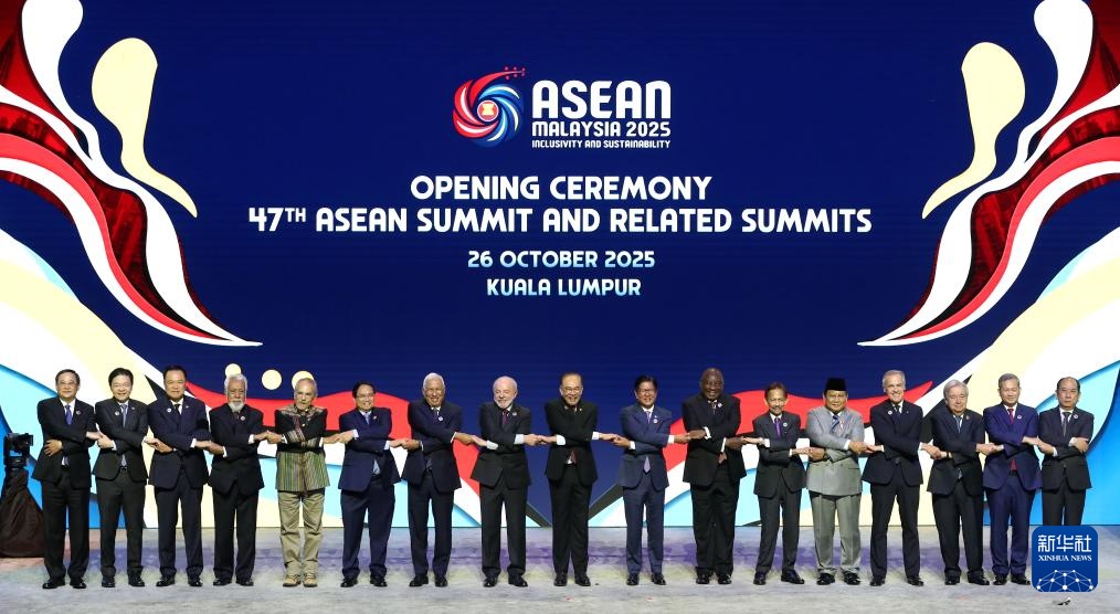 10月26日,第47届东盟系列峰会在马来西亚首都吉隆坡举行,开幕式上与会人员合影留念。第47届东盟峰会及系列会议将于10月26日至28日举行。东盟领导人将讨论深化区域一体化、促进经济增长、加强东盟互联互通等问题,重点关注东盟共同体建设和对外关系等问题。 26日,在东盟领导人的见证下,东帝汶正式成为东盟第十一个成员国。新华社记者森云鹏摄 分页 10月26日,东帝汶总理夏安娜在马来西亚首都吉隆坡举行的第47届东盟峰会及系列会议上发表讲话。图片由时代记者社提供 图片:新华社通讯员 岑云鹏 PAGE BREAK 这是10月2日在马来西亚首都吉隆坡街头拍摄的东盟峰会标志6.图:新华社邢广利分页 这是10月26日在马来西亚首都吉隆坡街头拍摄的东盟峰会标志。图:新华社邢广利分页 10月26日,记者在马来西亚首都吉隆坡东盟峰会新闻中心提问。新华社记者 邢光利 摄 10月26日,记者在马来西亚首都吉隆坡东盟峰会新闻中心工作。图片来源:新华社记者 李申元 分页 10月26日,在马来西亚首都吉隆坡,老挝总理桑赛、新加坡总理黄循财、泰国总理阿努廷、越南总理范明静、东帝汶总理扎纳纳、马来西亚总理安瓦尔、菲律宾总统马科斯、 文莱苏丹哈桑纳尔。柬埔寨首相洪马奈、总统普拉博沃印度尼西亚和缅甸代表(前排从左到右)签署《东帝汶加入东盟宣言》。新华社记者森云鹏供图。